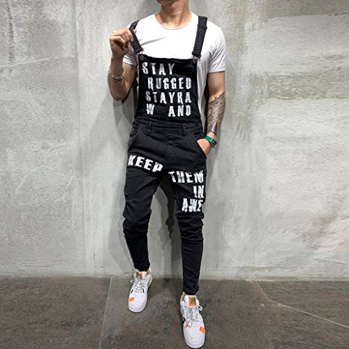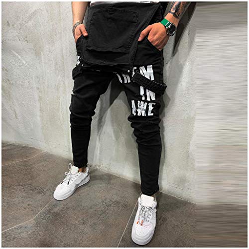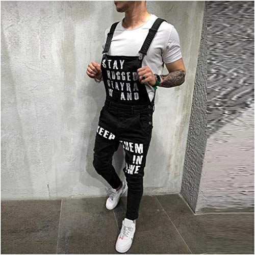 Rmoon Salopette da Uomo Denim Bib Giattes Moda Hole Ripped Slim Fit Tuta Salopette di Jeans Uomo Relaxed Fit - Stonewash Overalls a Buon Mercato