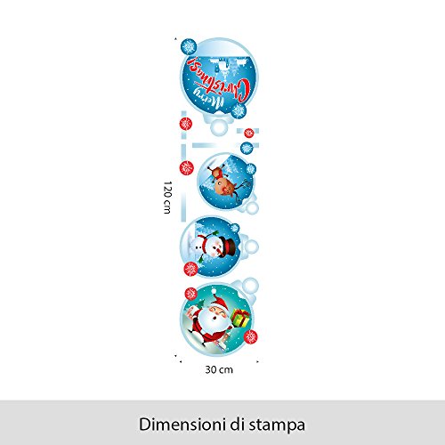 RN00102 Adesivi murali - Palline Merry Christmas - Vetrofanie natalizie - Misure 30x120 cm - Decorazioni vetrine per Natale, stickers, adesivi