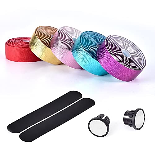 RNAGRET Nastro per manubrio, Nastri per manubrio da strada, bicicletta, manubrio in EVA PU, nastro per ciclismo, smorzamento, anti-vibrazioni con 2 tappi per barre (colore: oro)