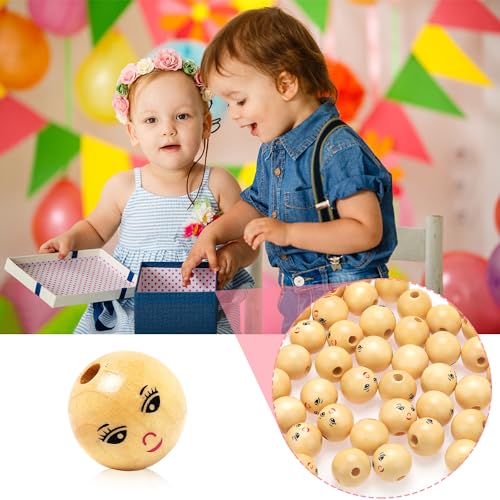 Set di perline di legno con viso: riceverete un set di 50 perlin legno, diametro foro 4 mm. Quantità sufficiente per completare i vostri gioielli fai da te.