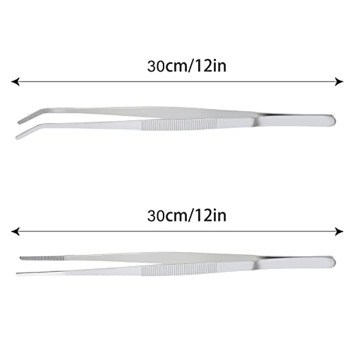 【2 tipi di pinzette da pinze da cucina 30cm】 Il nostro set di pinza cucina acciaio è disponibile in due stili! Il design della testa ricurva del primo tipo di pinzette da cucina consente operazioni più precise.La seconda pinzetta da cucina ha un design delicato della punta per aiutare gli chef a creare piatti delicati. Soddisfa le tue esigenze per diversi usi.
