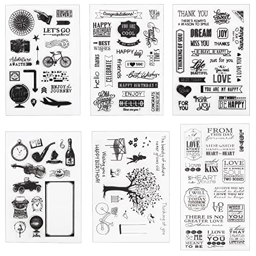 RNHDLY Timbro in Silicone 6 Stile Misto Timbro in Silicone Trasparente Trasparenti Timbri di Silicone, Timbri in Silicone per Scrapbooking per Fai da Te Decorazione Scrapbooking