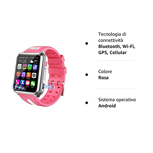 RNNTK Videochiamata Bambini Orologio Intelligente, Rete 4g Android Smartwatch per Bambini Activity Tracker,con Scheda SD WiFi Doppia Fotocamera Orologio Telefonico per Android iOS-Rosa 32 GB