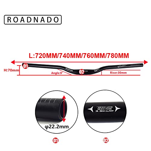 ROADNADO Professionale Manubrio MTB 31.8mm Lega di Alluminio Extra Lungo 780mm 720mm Manubrio per Bicicletta Leggero Riser Bar per Mountain Bike Bici da Strada Bici da Città Bici Pieghevole, Nero
