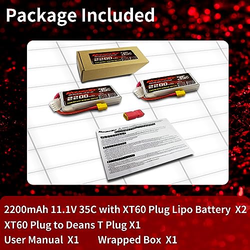 【What You Get】2 x 2200mAh 11.1V 35C con XT60 Plug RC Lipo Batteria;