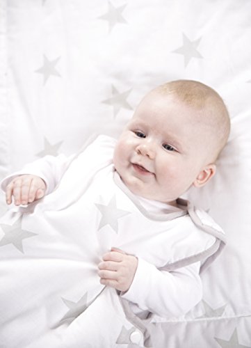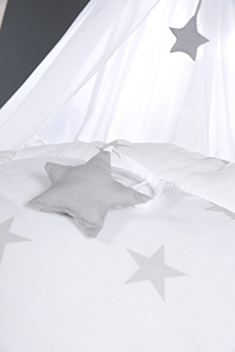 La biancheria da lettino per bambini roba della collezione "Little Stars" possiede un design moderno grazie alla stampa delle graziose stelline grigie su sfondo bianco