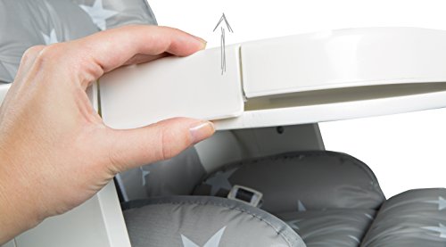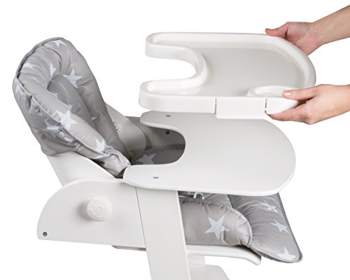 extra alto e adatto a tutte le altezze di tavolo tradizionali, con questo seggiolone il vostro tesoro troverá spazio ovunque e parteciperá attivamente alla vita familiare durante i pasti.