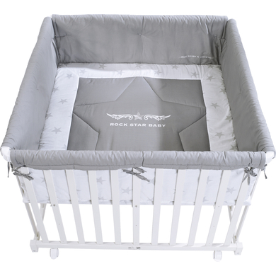 Box per bambini in legno naturale. Box quadrato 100 x 100 cm Regolabile in altezza in 3 livelli Con rotelle per semplificare gli spostamenti. Un posto sicuro per crescere, scoprire, imparare... Dettagli del prodotto: Colore: bianco Design: RS2 - Rock Star Baby Materiale: legno Tessuto: 35 % cotone, 65 % poliestere Imbottittura: poliestere Superficie: Larghezza x Lunghezza 96 x 96 cm Dimensioni: Ampiezza x Lunghezza x Altezza 100 x 100 x 72,5 cm Ripiano regolabile in 3 posizioni Compreso nella spedizione: 4 x rotelle Rivestimento Rock Star Baby