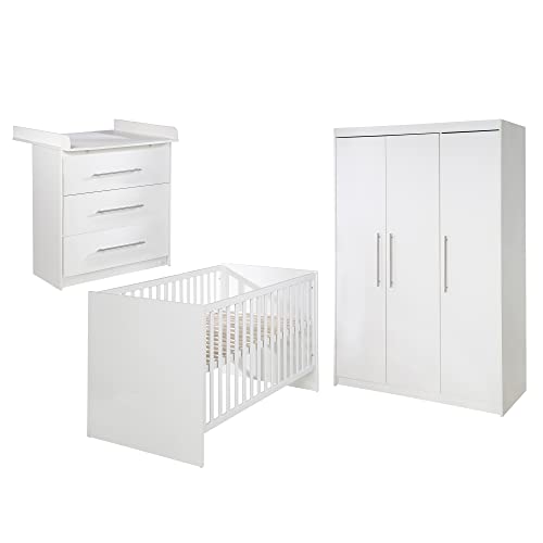 Roba - Cameretta completa per bambini"Maren", con lettino, superficie 70 x 140 cm, fasciatoio sottile con fasciatoio e armadio a 3 ante, colore: Bianco