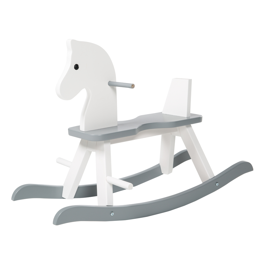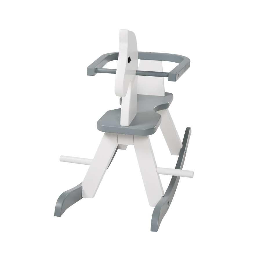 Con il cavallo a dondolo roba in legno massello di alta qualità in bianco e grigio, promuovi le capacità motorie, il tatto e l'attività del tuo bambino. I bambini amano dondolare! Il giocattolo è dotato di una sedia a dondolo con schienale e braccioli per neonati e bambini piccoli. Il bracciolo rimovibile fa sì che il bimbo possa usare il dondolo anche quando cresce. Non appena il bambino è più grande e può stare seduto da solo, basta rimuovere la barra di sicurezza. Un dondolo che offre sicurezza e divertimento ai bimbi. Il dondolo viene consegnato smontato. Il montaggio è un gioco da ragazzi. Materiali testati e certificati. Regolarmente testati dal produttore. Le superfici sono lavabili e facili da pulire. Il giocattolo di roba è stato sviluppato dopo l'introduzione della norma di sicurezza per i giocattoli EN 71-1:2014 sviluppato in Germania. Il cavallo a dondolo in legno massiccio ha un'altezza di seduta di 27 cm. Dimensioni ca. 82 x 43 x 55 cm. Il cavallo a dondolo è adatto fino ad un peso corporeo di 25 kg. Dettagli: Dimensioni: 82 x 43 x 55 cm Altezza seduta: 27 cm Materiale struttura: Legno laminato, legno sagomato Capacità fino a max. 25 kg Con bracciolo removibile Laccato bianco e grigio Età: a partire da 12 mesi Attenzione: Da usare sotto la sorveglianza di un adulto. Pericolo di lesione!