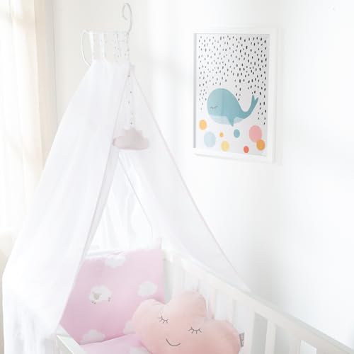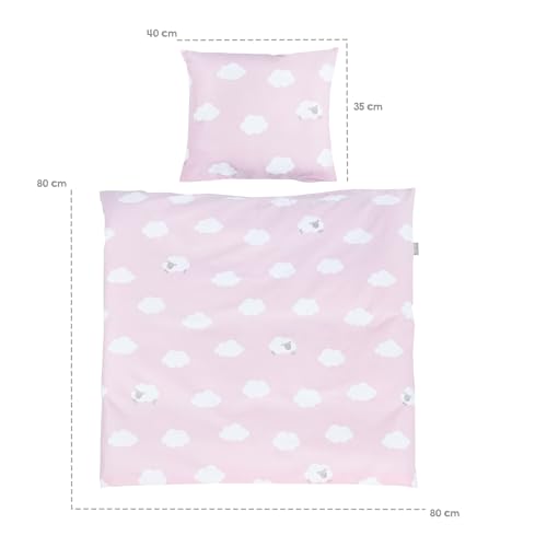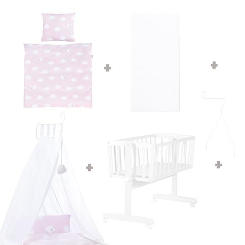 Roba Culla e lettino Kleine Wolke - Design a Nuvola - 40 x 90 cm - in Legno - Set da Letto Completo di Chiusura e Arredo Tessile - Bianco/Rosa