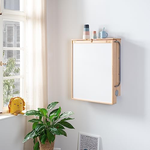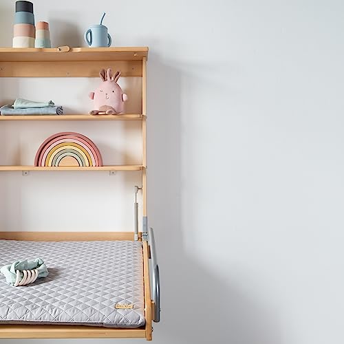 Roba Fasciatoio a Parete + Materasso roba Style Grigio - 2 Ripiani Pratici - Salvaspazio - Pieghevole - Inserto Imbottito e Morbido - Fino a 15 kg - Legno Naturale