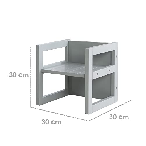 Il mobile multifunzionale per bambini 3 in 1 può essere cambiato ruotando lo sgabello in tre diverse altezze di seduta (altezza seduta: 14 cm, 18 cm o 29 cm). Dimensioni complessive: altezza 30 cm, larghezza 30 cm, profondità 30 cm