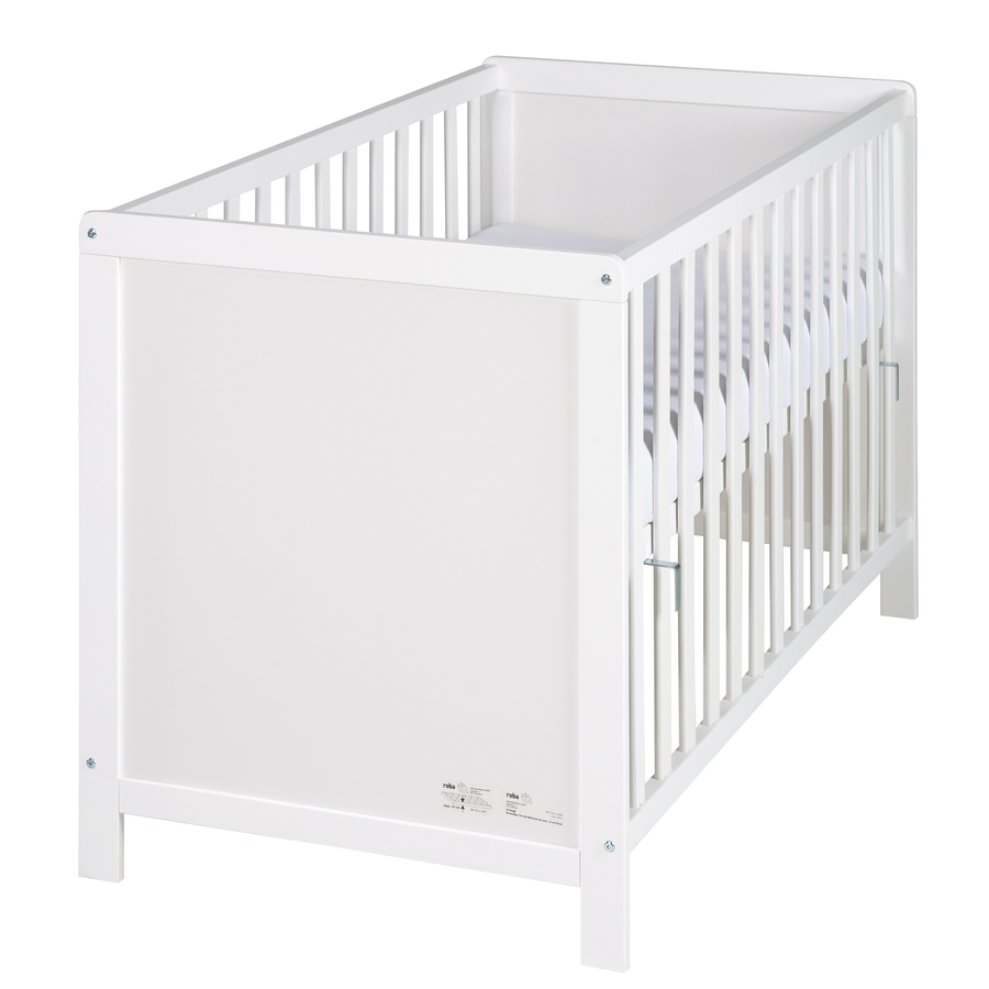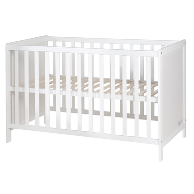 Il lettino roba è regolabile in altezza e può essere affiancato al letto dei genitori come lettino co-sleeping, grazie alla possibilità di rimuovere 5 delle barre laterali della sponda Il lettino può essere agganciato a quello dei genitori (spessore massimo lati letto 4,5 cm) a partire da un'altezza di 22 cm fino a 42 cm. Il letto può essere equipaggiato con il set roba in 4 pezzi composto da cuscino, coperta, velo baldacchino e paracolpi in molti design diversi che si adattato alla cameretta del bambino. Trasforma la culla in lettino. Quando il bimbo cresce può salire e scendere dal letto in maniera indipendente. Il lettino ha una superficie di sdraio di 60 x 120 cm. Dettagli del prodotto: Può essere usato con seggiolino da bagno La superficie di sdraio è regolabile in altezza di 5 volte 5 sbarre staccabili Dettagli tecnici: Colore: bianco Materiale: compensato, laccato Superficie di riposo: Larghezza x Lunghezza 60 x 120 cm Dimensioni: Dimensioni (larghezza x lunghezza x altezza): 66 x 123 x 76 cm Altezza del telaio regolabile da min. 22 cm a max. 42 cm Inclusi nella spedizione: Lettino co-sleeping Rete a doghe in legno Attenzione: Materasso e decorazioni NON sono inclusi nella spedizione!