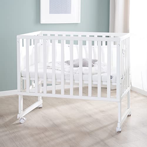 Roba Lettino Co-sleeping safe asleep 3 in 1, 45 x 90 cm, Altezza Regolabile, Design Sternenzauber Gris, Set Completto con Culla, Inserto, Barriera in Tessuto e Ruote con Freni, Legno Laccato Bianco