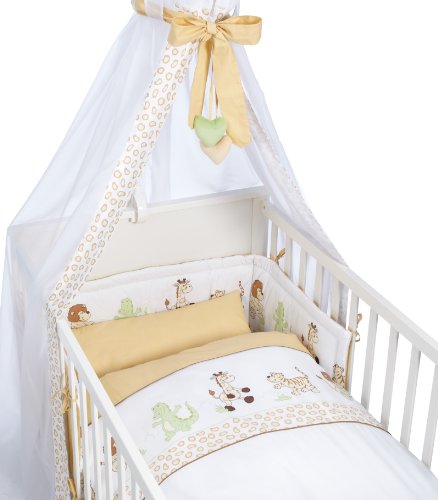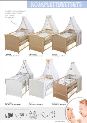 Roba Lettino Completo di Tessile, Lettino in Legno Laccato Bianco Comprensivo di:federa, Copripiumino, Paracolpi, Materasso, Baldacchino, Lettino 70x140cm, Trasformabile in Letto Junior