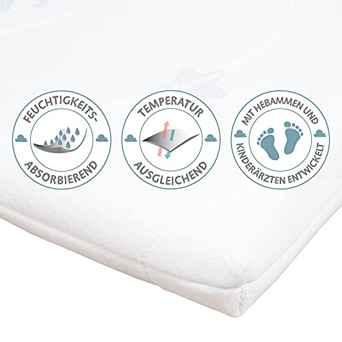 Roba Materasso per Culla safe asleep - Serie Air Balance Plus - 45 x 90 x 5,5 cm - con Zip - Sfoderabile e Lavabile - Trapuntato e Traspirante - Bianco