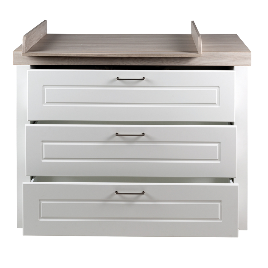 Con la sua comoda altezza di 90 cm, il fasciatoio roba Felicia rende la cura del bambino un piacere per i genitori e il bambino. Il cassetto superiore si estrae completamente in modo che tutto sia a portata di mano per la cura del bambino. Il mobile fasciatoio roba è un vero tuttofare e ti sarà utile per molti anni. Può essere usato come un rialzo, per aiutare il tuo bambino a vestirsi, o come una cassettiera in salotto o nella cameretta. Il fasciatoio con eleganti maniglie color argento in metallo e senza viti visibili è una delle nostre ampie varianti. Con altri mobili della serie Felicia, puoi creare una camera per bambini o per neonati completa e di stile. Il fasciatoio è stato sviluppato in Germania ed è conforme alle attuali norme di sicurezza secondo EN 12221 - 1+2:2008 + A1:2013. Dettagli del prodotto: Colore: bianco Materiale corpo: truciolato, rivestito in melamina Materiale parti frontali: MDF, rivestito Materiale pannello posteriore: HDF Materiale maniglie: metallo Dimensioni senza fasciatoio: larghezza x profondità x altezza 120 x 42 x 98 cm Dimensioni con fasciatoio: larghezza x profondità x altezza 120 x 75 x 98 cm Altezza fasciatoio: 90 cm 3 cassetti Cassetto superiore con estrazione totale Il fasciatoio è rimovibile Incluso nella consegna: Cassettiera Fasciatoio Attenzione: la decorazione non è inclusa nella consegna.