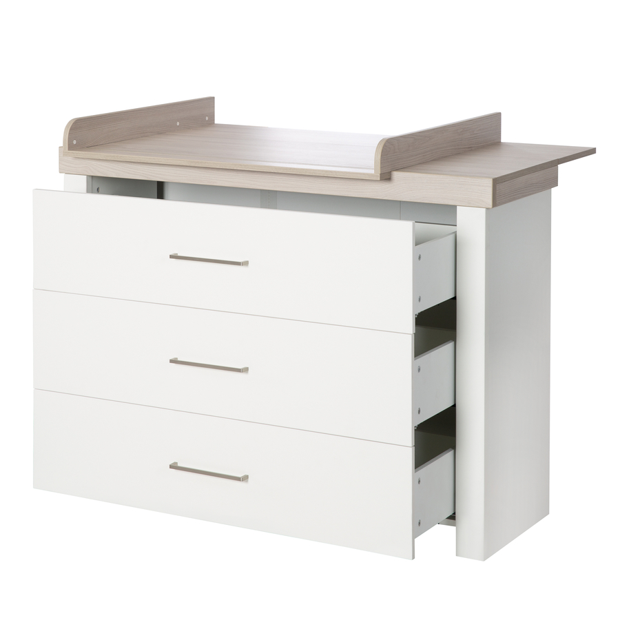 Il fasciatoio roba Lucy con piano di cambio rimovibile ha un'altezza di cambio che è facile sulla schiena. L'ampio fasciatoio ha maniglie color argento Metal, un mobile bianco e frontali bianchi e un bordo Luna Elm. Il fasciatoio si fonde con qualsiasi ambiente grazie al modern en Design s. La superficie fasciatoio è adatta per fasciatoi fino a 85 x 75 cm. I fasciatoi imbottiti roba nelle dimensioni 85 cm x 75 cm si adattano perfettamente alle dimensioni del piano del fasciatoio e trasformano il fasciatoio in un comodo fasciatoio. La parte superiore del fasciatoio può essere fissata a destra, al centro o a sinistra del petto. Tutti i cassetti aden sono dotati di un cassetto a chiusura morbida che si chiude silenziosamente e con cura. Il fasciatoio è un vero tuttofare. Quando si rimuovono le parti del fasciatoio, il fasciatoio diventa una cassettiera senza viti visibili nel pannello superiore. Il fasciatoio è conforme alle attuali norme di sicurezza secondo EN 12221 - 1+2:2008 + A1:2013. Il fasciatoio è facile da montare. Dettagli del prodotto Colore: bianco Materiale: truciolato, rivestito in melamina Materiale maniglie: Metal l Zona cambio: larghezza x profondità 85 x 75 cm Dimensioni: larghezza x profondità x altezza 120 x 42 x 100 cm Dimensioni con fasciatoio: larghezza x profondità x altezza 120 x 75 x 100 cm Altezza di cambio: 90 cm L'unità di cambio può essere montata a destra, al centro o a sinistra 3 cassetti aden con tecnologia soft-close Incluso il fasciatoio
