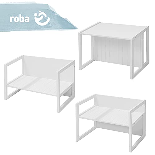 Roba Panca per Bambini in Legno Regolabile a 2 Altezze di Seduta - Convertibile in Tavolo - Multifunzionale - Stile Rustico - Legno Laccato Bianco