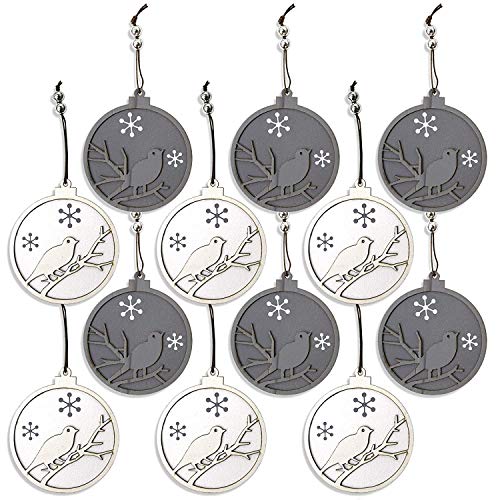 By Robelli Shabby Chic Legno Albero di Natale da Parete Ciondolo Bagattelle Decorazioni - 12 x Grigio e Bianco Figura Uccellini, White