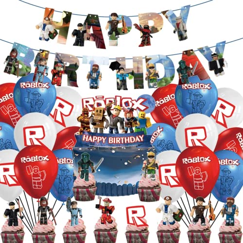 Roblox Compleanno Decorazion simyron 30PCS Roblox Palloncini Striscioni Buon Compleanno Torta Topper Feste Decorazioni Compleanno Forniture per Feste