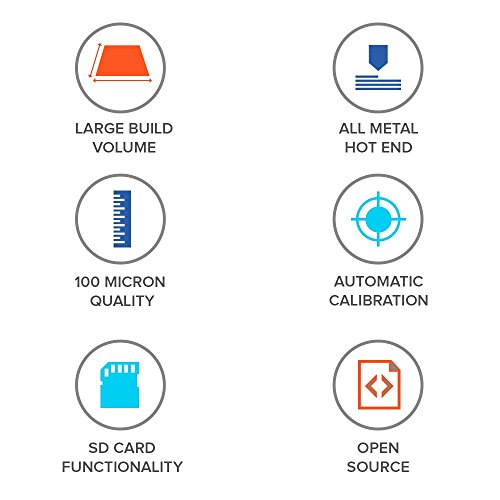 Fabbrica parti usando filamenti da 1,75mm di diametro in ABS, PLA, t-glase, laywood, HIPS (polistirene ad alto impatto) e filamenti flessibili (venduti separatamente)
