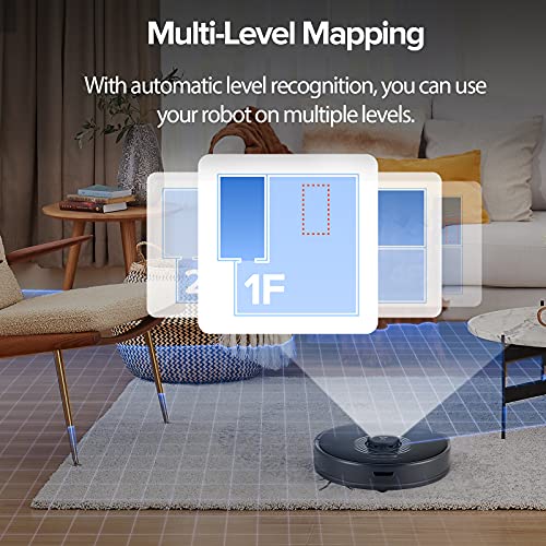 Riconoscimento ad ultrasuoni dei tappeti con sollevamento intelligente della spazzatura: in grado di sollevare tappeti a pelo basso per aspirare, evitare lo sporco incrociato e altro ancora. Identifica dove sono i tappeti, dice alla scopa di alzarsi e mostrare i tappeti nell'applicazione.