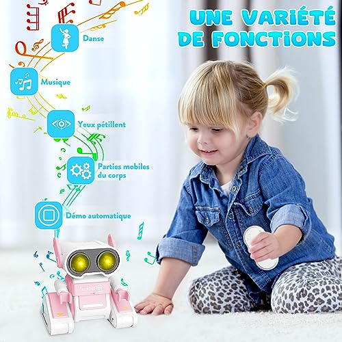 Robot giocattolo per bambini, robot telecomandato con 7 occhi a LED a colori e musica, 80 minuti di riproduzione giocattolo per bambini ricaricabile regalo per ragazzi e ragazze dai 3 anni in su