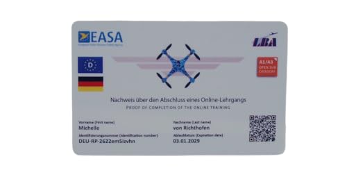 Roboterwerk - Patente di guida per droni, Certificato di competenza EASA A1/A3 e A2, carte di assegno, con codice QR e bandiera nazionale opzionale, foto ID e dati di indirizzo carta di plastica
