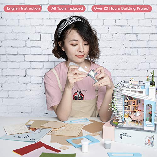 Robotime Kit casa di Bambole in Miniatura Adulti - Camera Carina Regalo per Ragazze di 14 Anni - Portico Modello Casa in Legno (Loft)