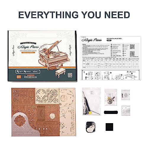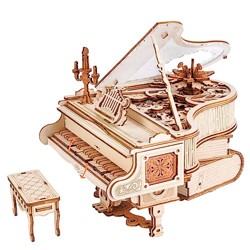 ROBOTIME 3D Puzzle in legno Pianoforte Magico, Kit di Modello Adulti Della Scatola Musicale, Costruzioni Semovente Della Struttura Dell'ingranaggio, Miglior Regalo