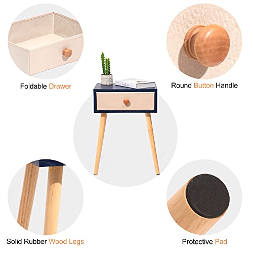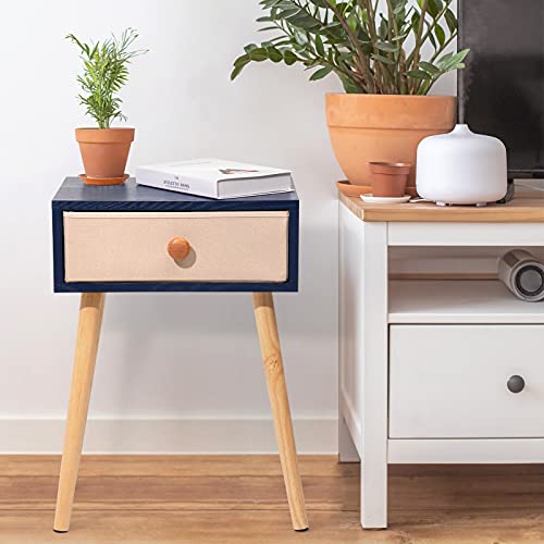Robotime Tavolino per Soggiorno Comodino in Legno con 1 Cassetto in Tessuto, Comodino Comodino per Soggiorno, Mobili per Camera da Letto