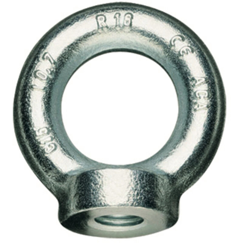 Per sollevamento, in acciaio zincato DIN 582. Con trattamento termico di normalizzazione. Coefficiente di sicurezza: 6. Codice l