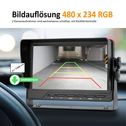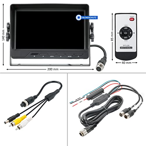 VSG 7" HD Rückfahrmonitor/Heavy-Duty/extrem robust / 12-24 Volt/Kamerastromversorgung/Bildspiegelung / 2 Videoeingänge/e-Zulassung/SELECT-Serie