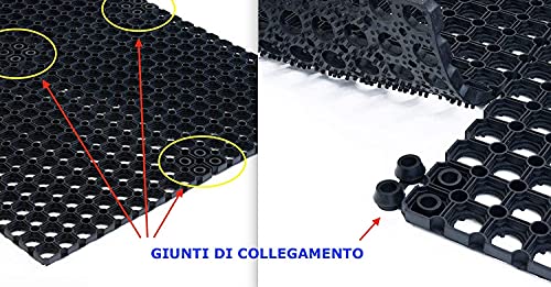 ALTE PRESTAZIONI: 100% Gomma per tappeti naturale con struttura forata a quadrati e ad anelli e base rialzata, puntellata, per aderire bene su qualsiasi pavimento prolungabile all'infinito con i giunti di raccordo