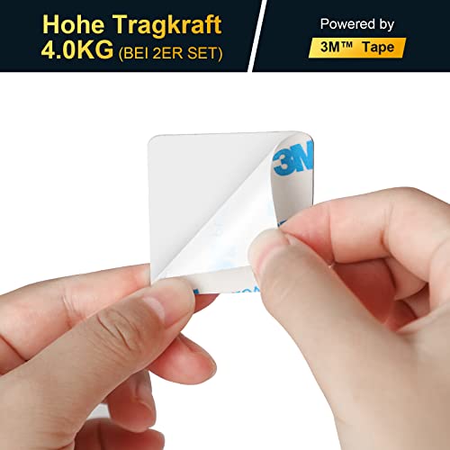 Alta capacità di carico: nastro adesivo 3M su ganci adesivi, in set da due con una capacità di carico fino a 4 kg.