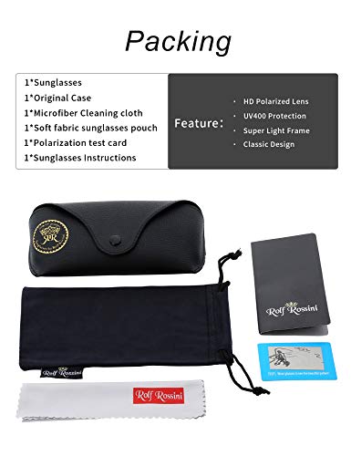 Rocf Rossini Occhiali da Sole da Uomo Polarizzati Occhiali da Sole Donna Vintage Guida Classici Protezione UV (Black)