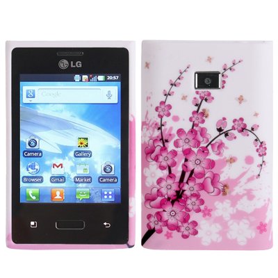 Rocina TPU case shell per LG E400 Optimus L3 con peduncolo in rosa scuro bianco