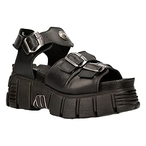 New Rock M-BIOS101-C2 Unisex Metallico Nero 100% Pelle Sandalo Punk Rock Stivali, Nero, 42 2/3 EU