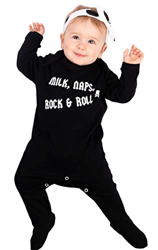 Taglie: 0 - 3 mesi, 3 - 6 mesi, 6 - 12 mesi | progettato e realizzato nel Regno Unito | ragazzi o ragazze - latte, pannolini, rock & roll è un marchio registrato - è una fantastica idea regalo per baby shower o un outfit rock n roll.