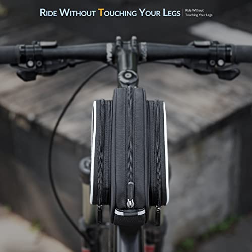 ROCKBROS Borsa Telaio Bici, Borsa Tubo Anteriore per Bicicletta MTB, Estendibile con Tasche Laterali, Installazione Facile, Grande Capacità 1.8L, Accessori Bici