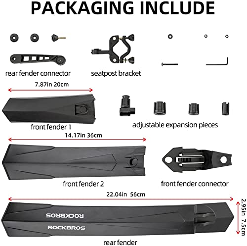 ROCKBROS Parafango Bici MTB in Gomma Morbida Elastica Sgancio Rapido Nero 26 Pollici