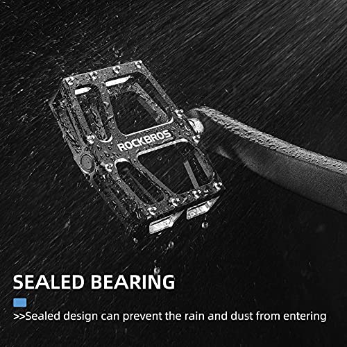 ROCKBROS Pedali per Bici in Alluminio, Pedali per MTB Bicicletta, Filettura 9/16 Pollici, con Cuscinetto Sigillato, Superficie Grande, Antiscivolo Universale