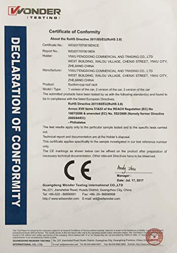 CAPACITÀ DI CARICO: Carico massimo a 20kg. ATTENZIONE!!! la velocità deve essere inferiore a 120 km / h e si deve controllare ogni 4 ore. Se piove dovete pulire benissimo il tetto dell'auto. Il lato di pompetta deve essere verso posteriore dell'auto. Prima di partire è importatne controllare se ogni vite è a posto.