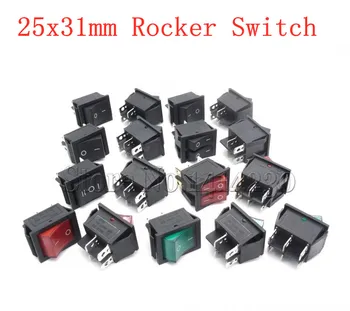 Rocker Power Switch 25*31mm KCD4-201 4 Pin 6 Pin 2 / 3 Position 16A 250V 20A 125VAC Green Red Black Button with Light