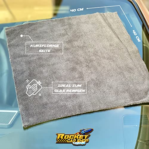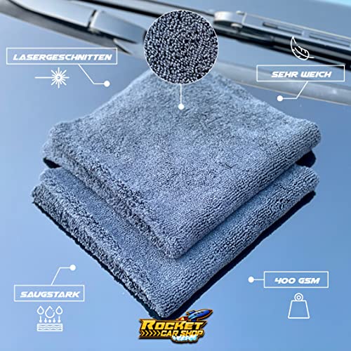 Rocket Black Laser Cut 2 X panni in microfibra 400 GSM per la cura dell'auto, taglio laser, senza bordi, nero, 40 x 40 cm, senza pelucchi, assorbenti, panno in microfibra (2)