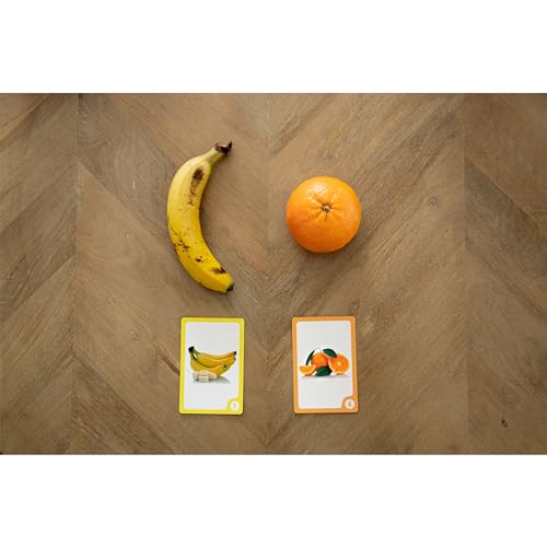 FLASH CARDS EDUCATIVE MULTILINGUE: Include un libretto con le parole in 7 lingue: spagnolo, inglese, tedesco, francese, italiano, portoghese e olandese. Il nome dei cibi non compare nelle carte.
