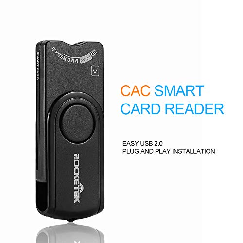 Rocketek CAC Card Reader e lettore di schede di memoria USB DOD di concezione militare per l'accesso intelligente, compatibile con Windows (32 / 64bit) XP/Vista / 7/8/10, Mac OS X