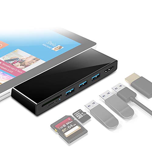 Rocketek Surface PRO 4 Portatile Hub USB Dock Station, Lettore di schede SD/Micro SD Card Writer, 3 Porte USB 3.0, HDMI 4K, Surface PRO 4 Compatibile